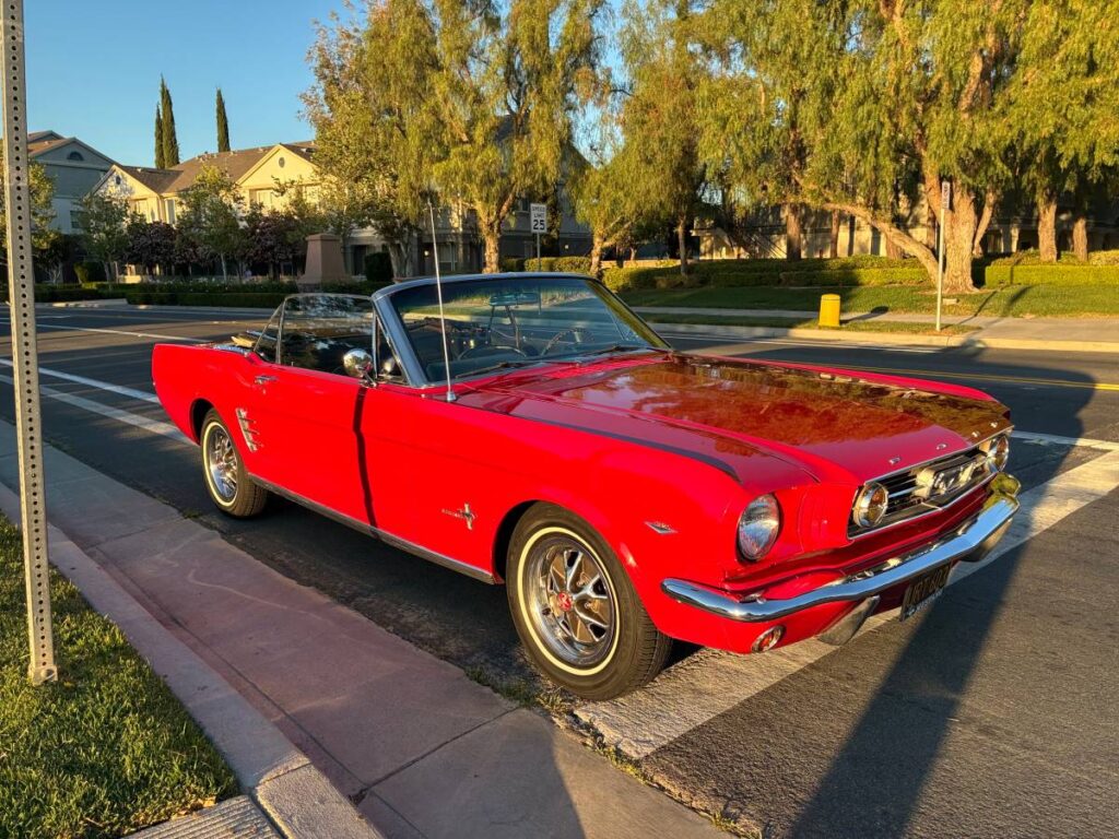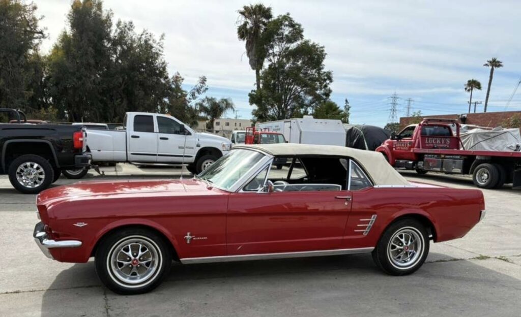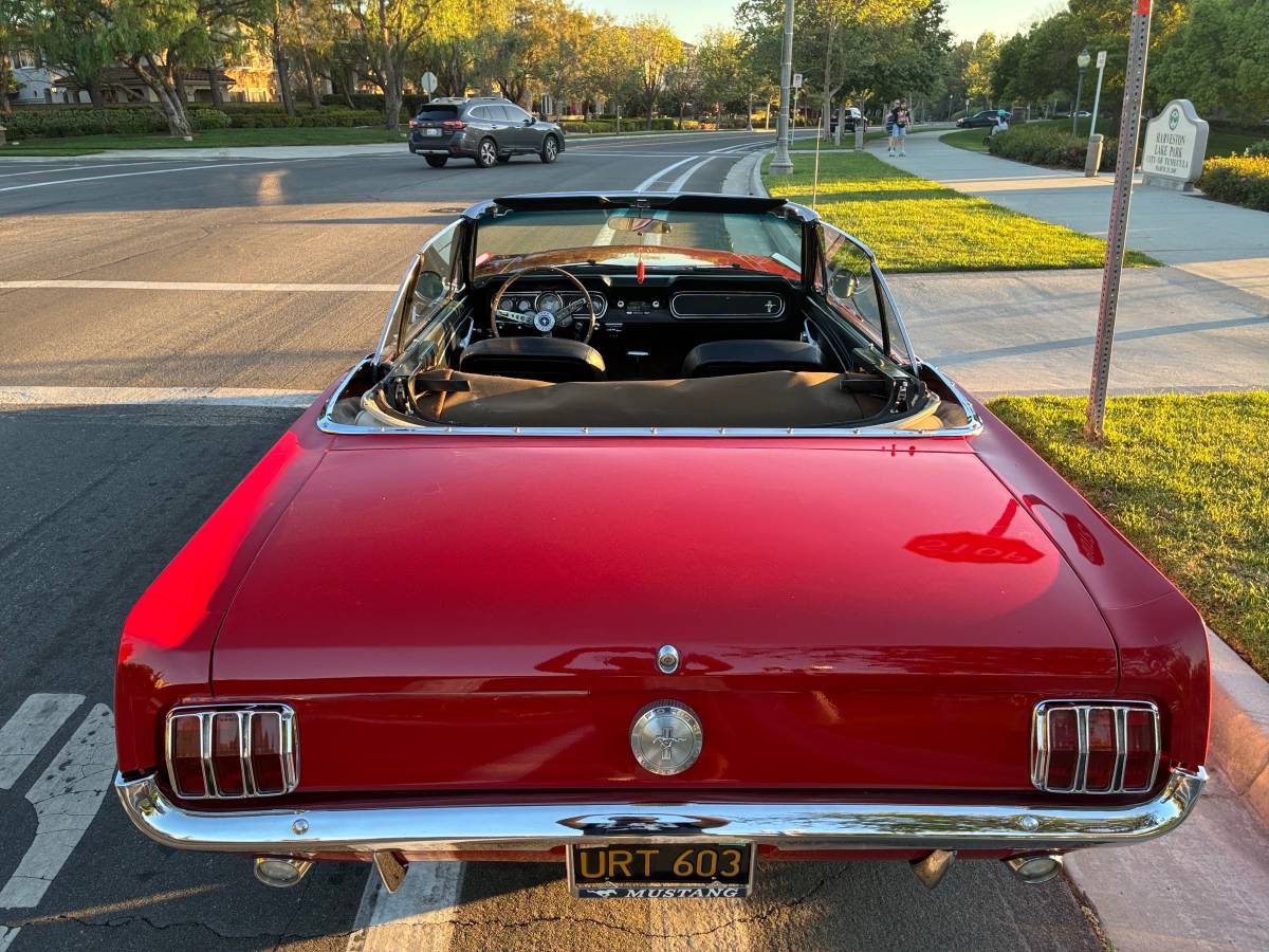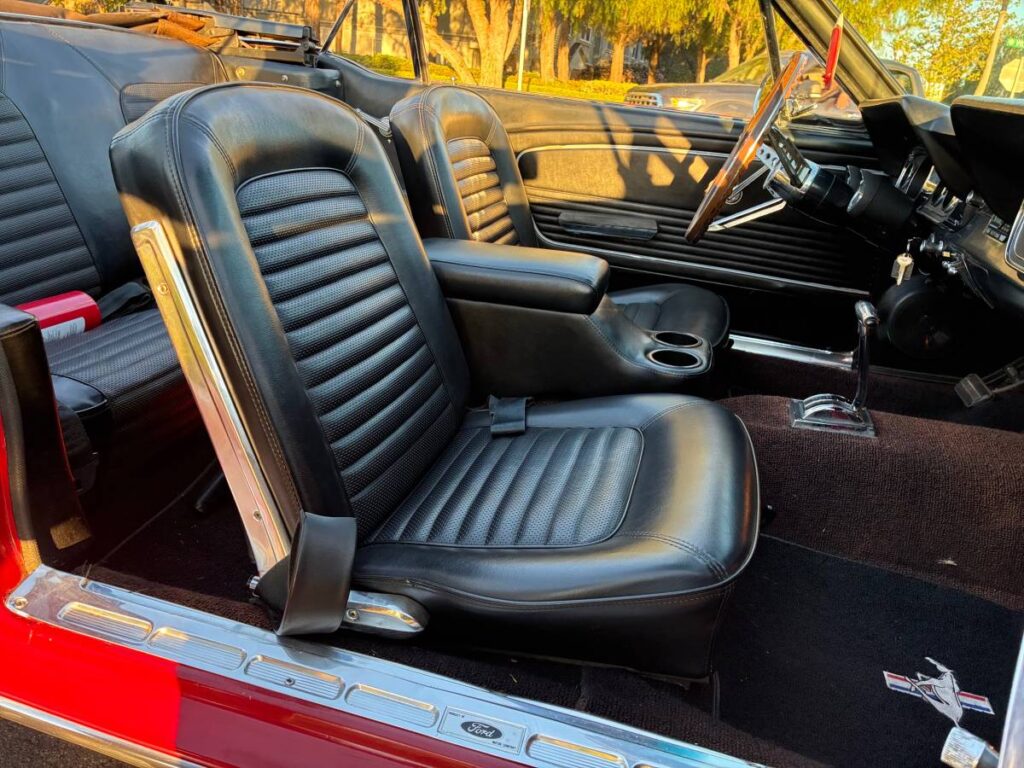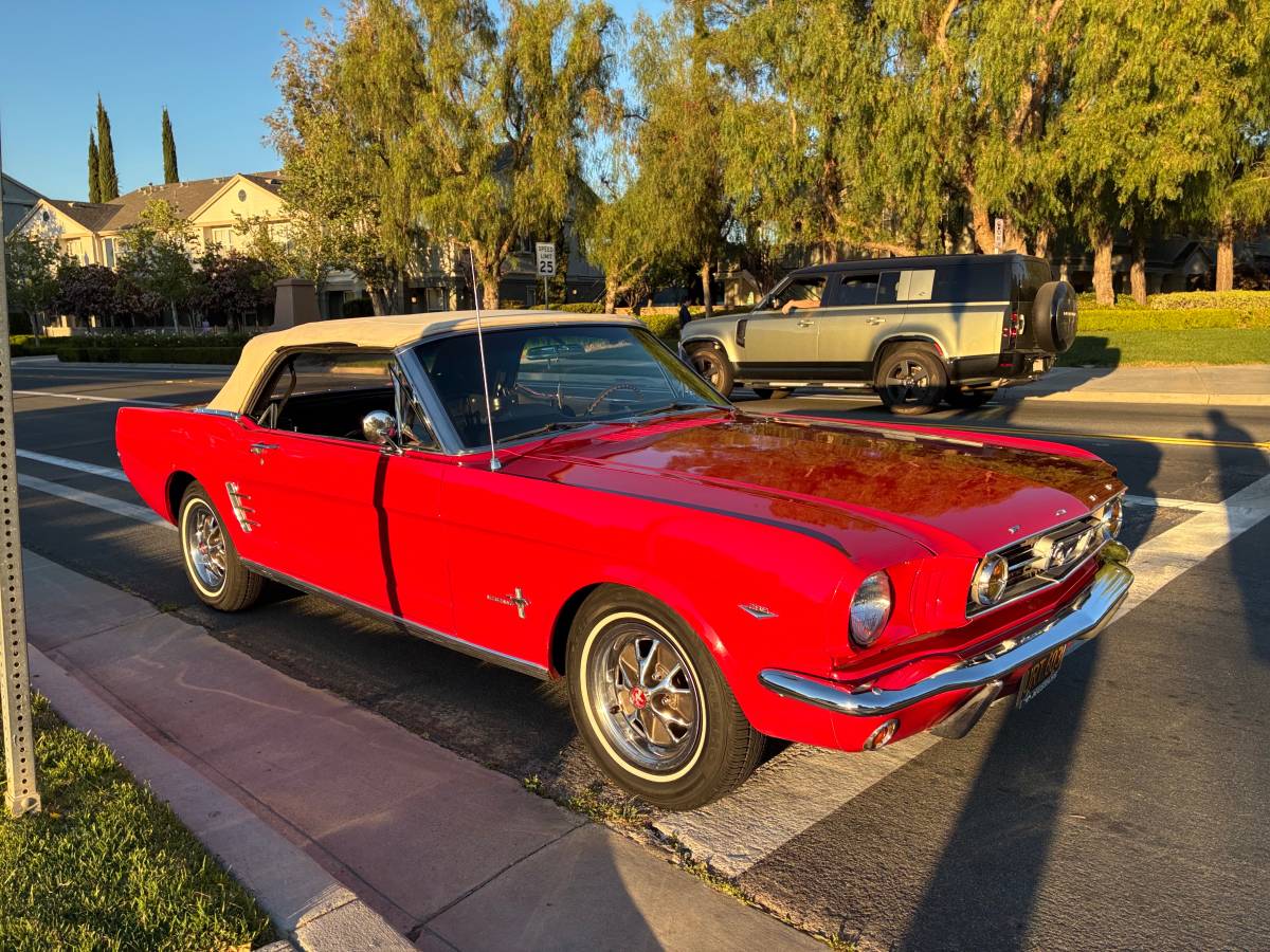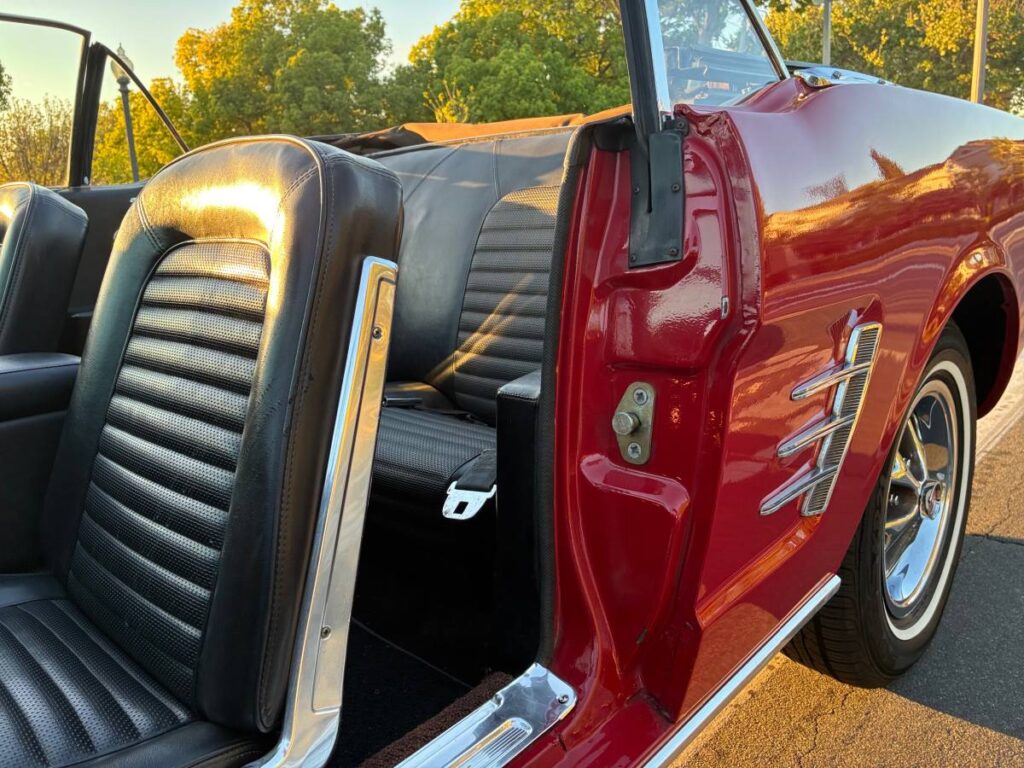 De lak is netjes. Het glimt goed en er is geen roest. De rode kleur komt goed uit met de witte strepen en het deels witte interieur. Een perfecte match! Hier en daar een imperfectie maar niets ernstigs. Er is geen roest aan deze Mustang. De bodemplaten zijn keurig in orde zoals je van een auto uit California mag verwachten, want daar komt deze Mustang oorspronkelijk vandaan.