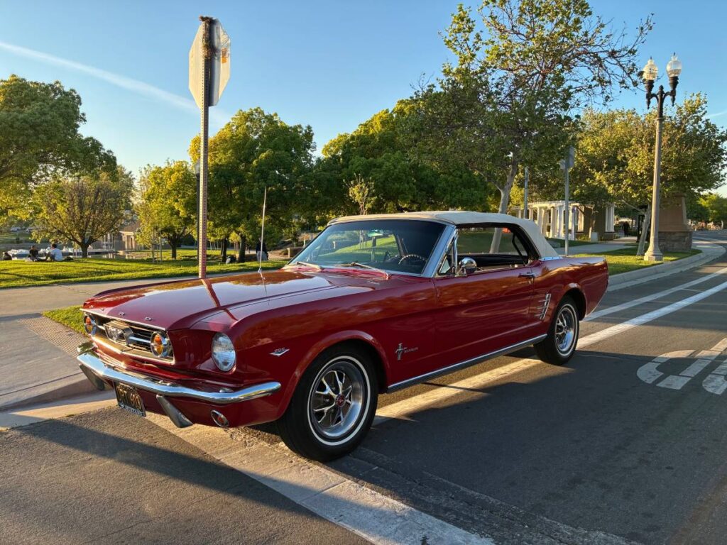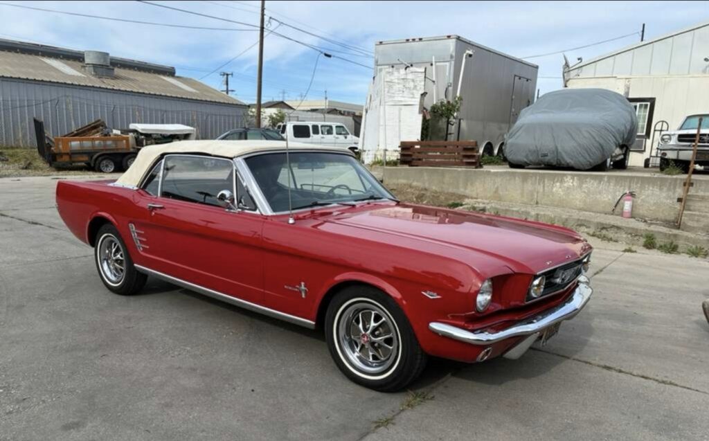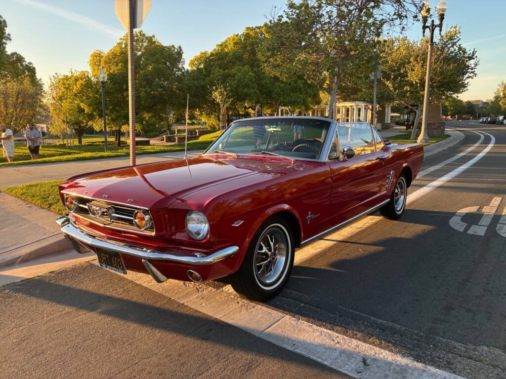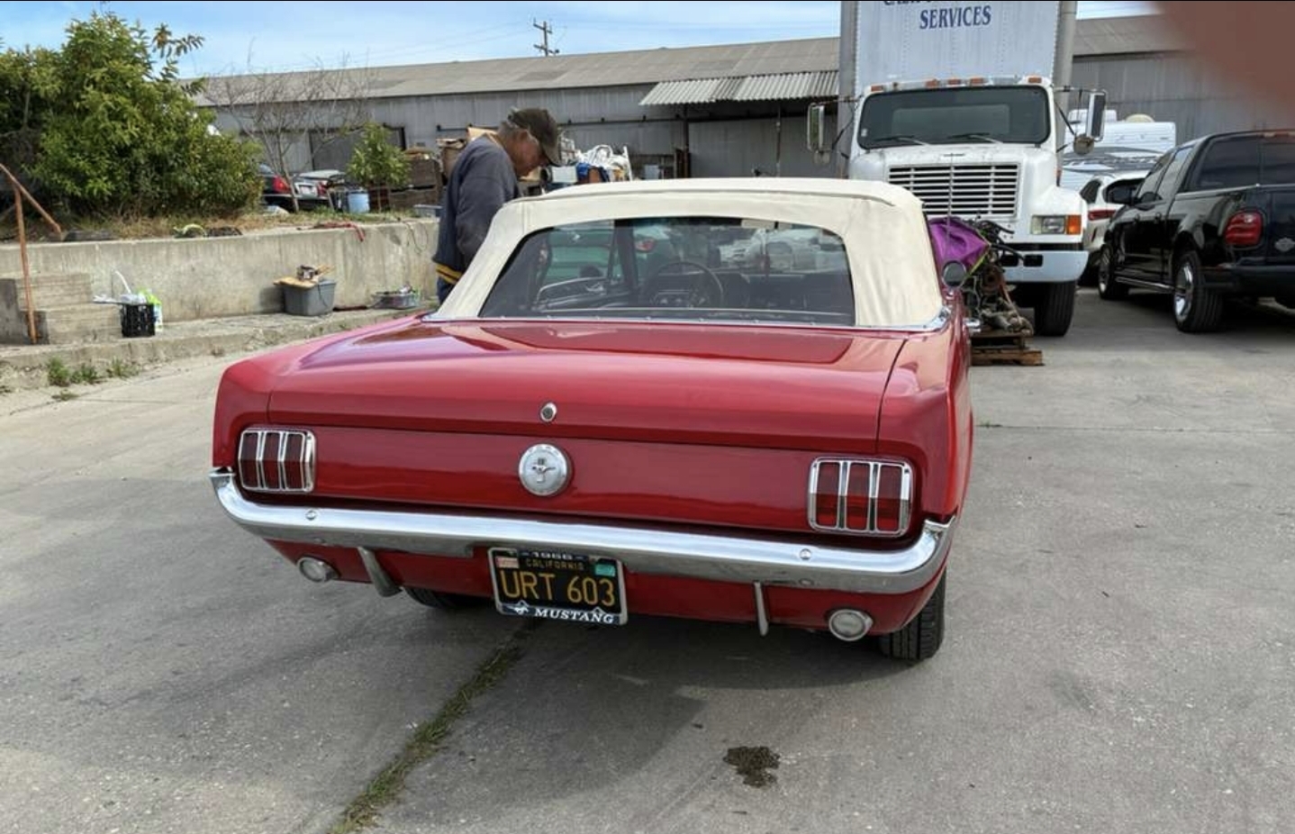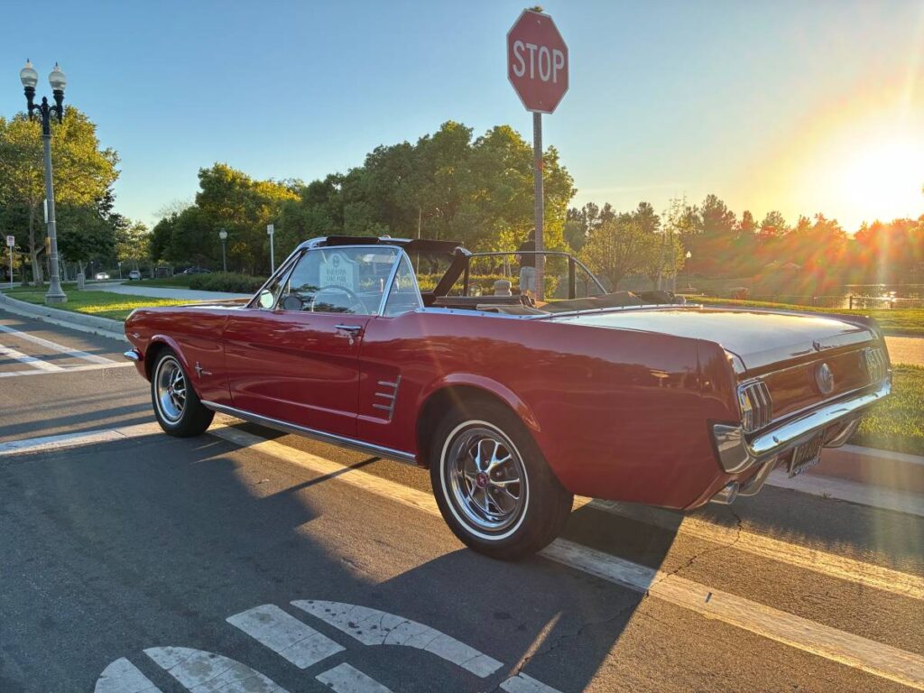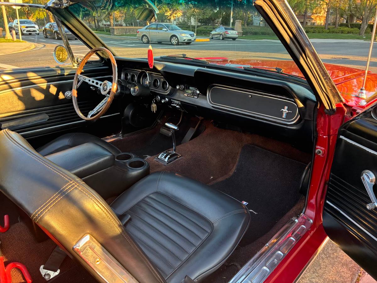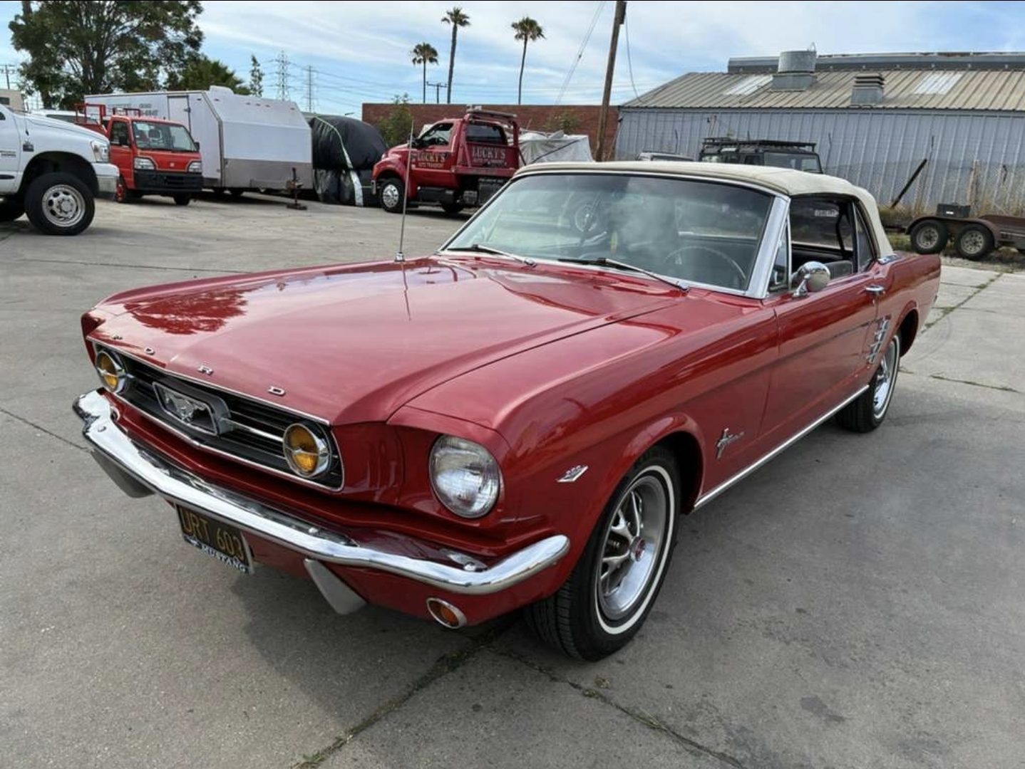 De lak is netjes. Het glimt goed en er is geen roest. De rode kleur komt goed uit met de witte strepen en het deels witte interieur. Een perfecte match! Hier en daar een imperfectie maar niets ernstigs. Er is geen roest aan deze Mustang. De bodemplaten zijn keurig in orde zoals je van een auto uit California mag verwachten, want daar komt deze Mustang oorspronkelijk vandaan.