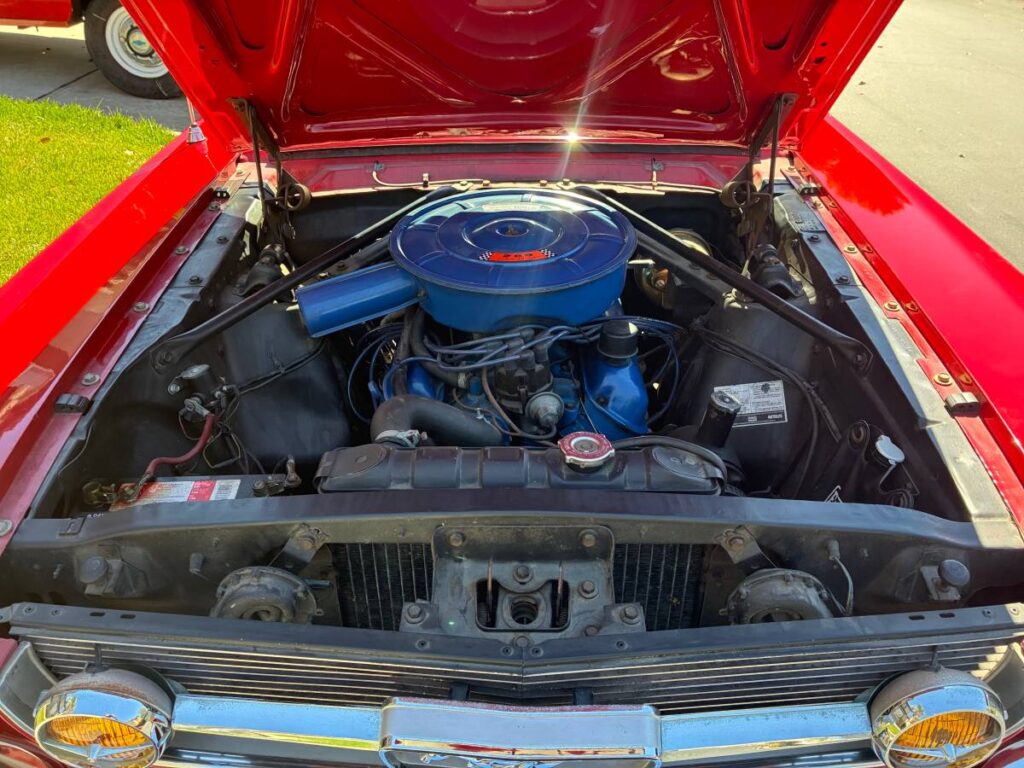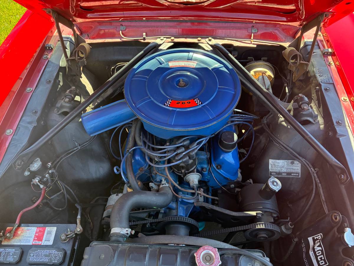 Onder de kap ziet alles er netjes uit. Deze leuke Mustang is voorzien van een 289V8 motor en een C4 automatische versnellingsbak. De motor draait goed en de versnellingsbak schakelt soepel. Het is een C code motor.