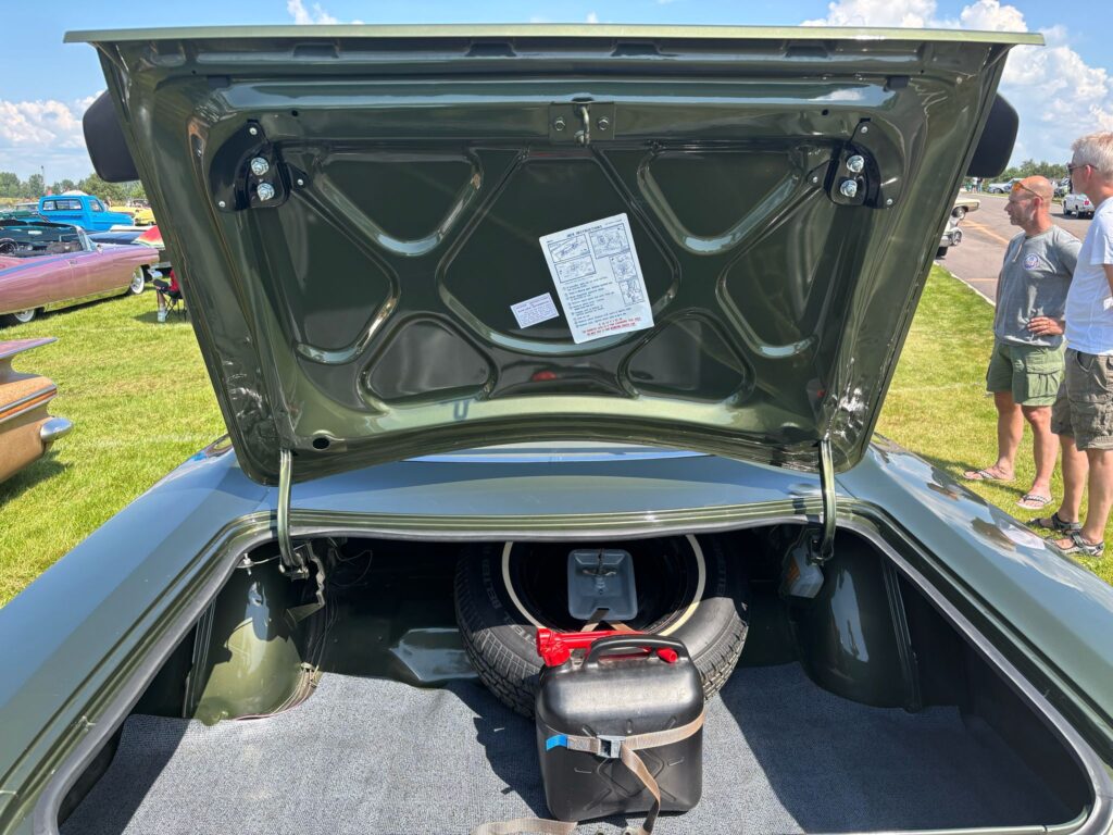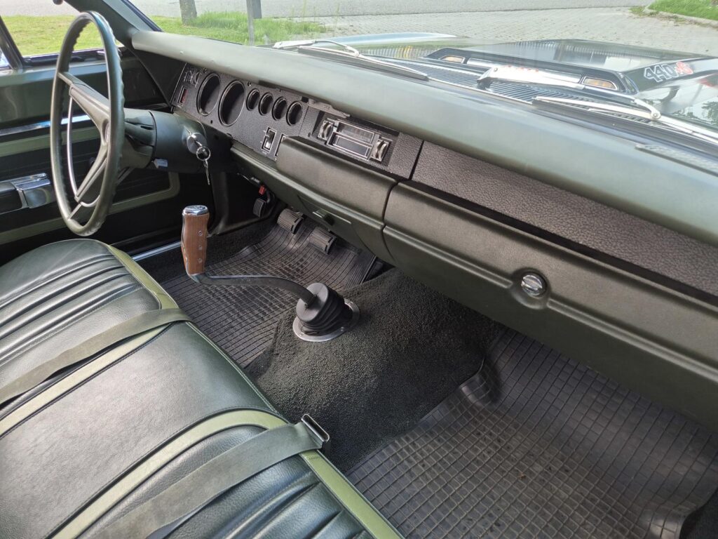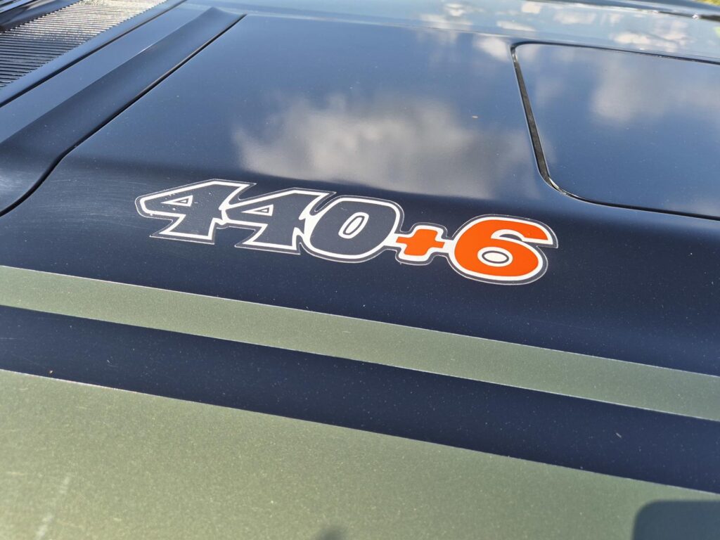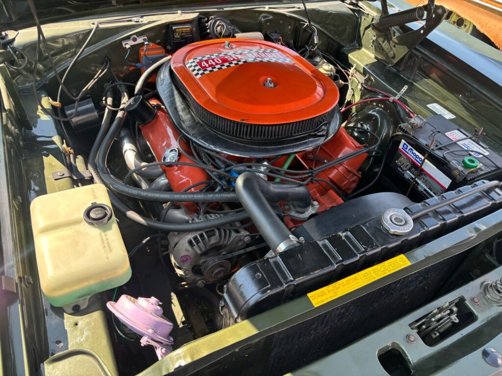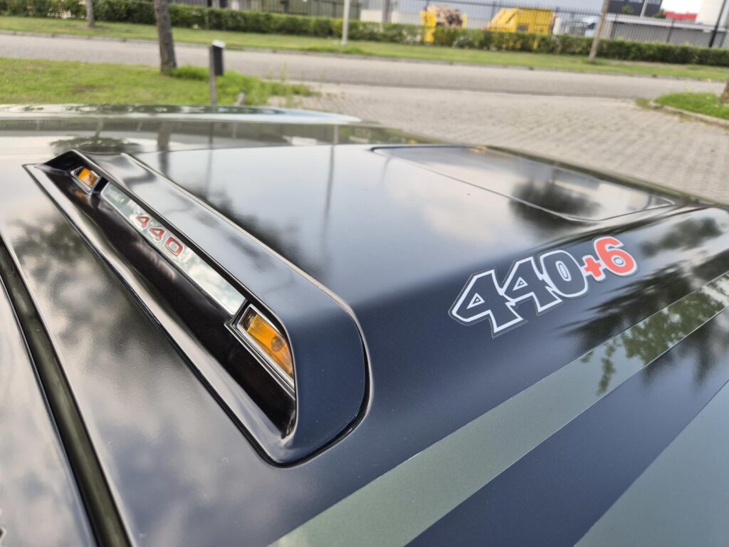 De 440 heeft de air grabber motorkap (fresh air hood). Ook van onderen is deze Mopar in top shape.